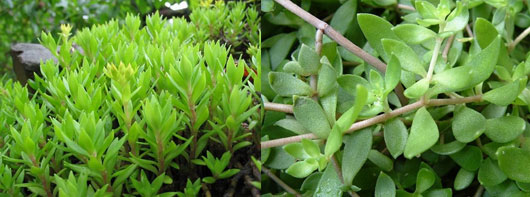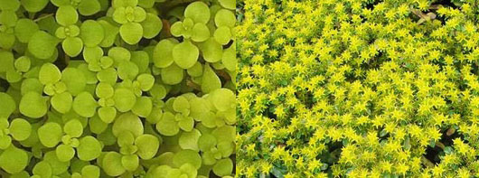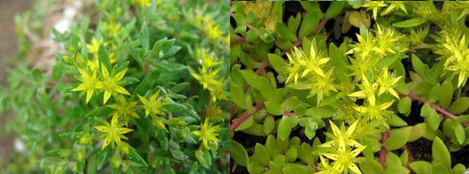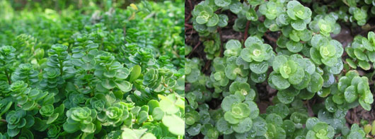 (2)、凹葉景天:草本植物景天科,景天屬。 10—17厘米。為多年生匍甸狀肉質(zhì)草本。 上海地區(qū)可露地越冬,耐旱,喜半陰環(huán)境。 (3)、垂盆草多年生肉質(zhì)草本,高10-20厘米,莖纖細(xì),匍匐或傾斜,整株光滑無毛,近地面的莖節(jié)容易生根。其生長力特強(qiáng),能節(jié)節(jié)生根。 垂盆草綠色期長,是園林中較好的耐陰地被植物。但因它的葉子質(zhì)地肥厚多汁,不耐踐踏,故只宜在封閉式綠地上或屋頂上種植。也可作盆景、花壇的材料。 (4)、 金葉景天:植株高5至7厘米,莖匍匐生長,節(jié)間短,分枝能力強(qiáng),叢生性好。單葉對生,密生于莖上,葉片圓形,金黃色,鮮亮,肉質(zhì)。 金葉景天性喜光,耐寒,耐半陰,忌水澇,是一種優(yōu)良的彩葉地被植物,但不耐踐踏。