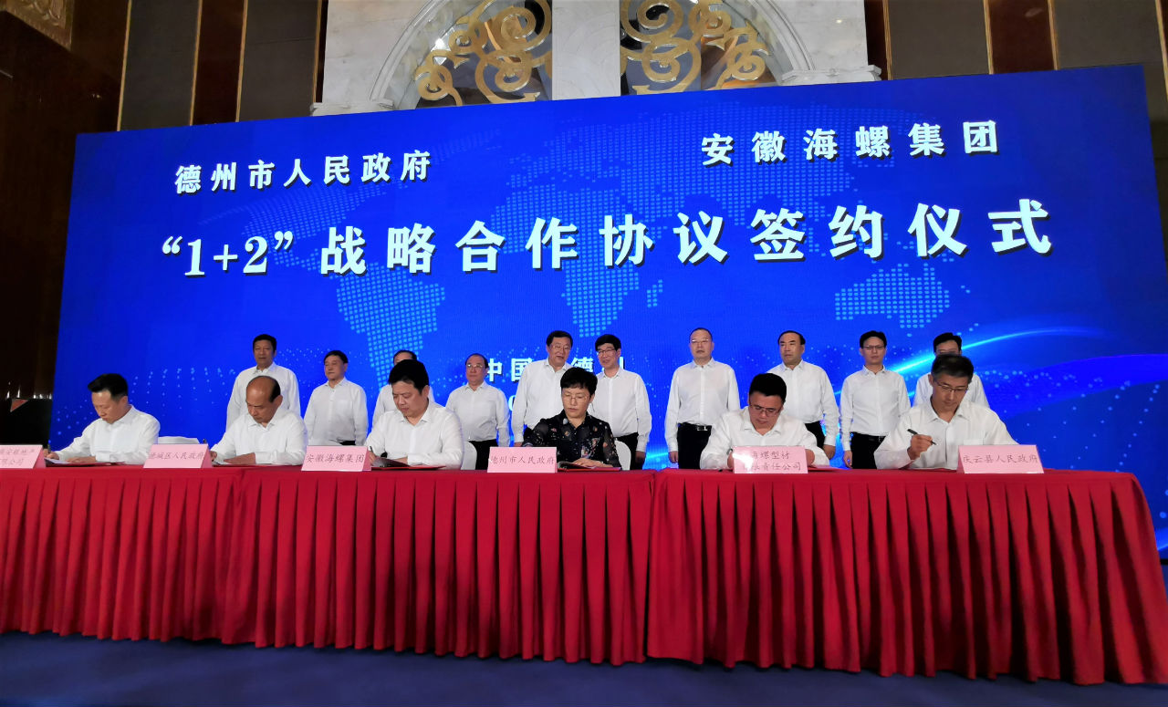 8月28日,海螺集團(tuán)與德州市人民政府戰(zhàn)略合作協(xié)議簽約儀式在山東德州市舉行。德州市委書記李猛,海螺集團(tuán)黨委書記、董事長(zhǎng)高登榜出席儀式并致辭。海螺集團(tuán)副董事長(zhǎng),國(guó)貿(mào)集團(tuán)黨委書記、董事長(zhǎng)范陽(yáng)參加了簽約儀式。