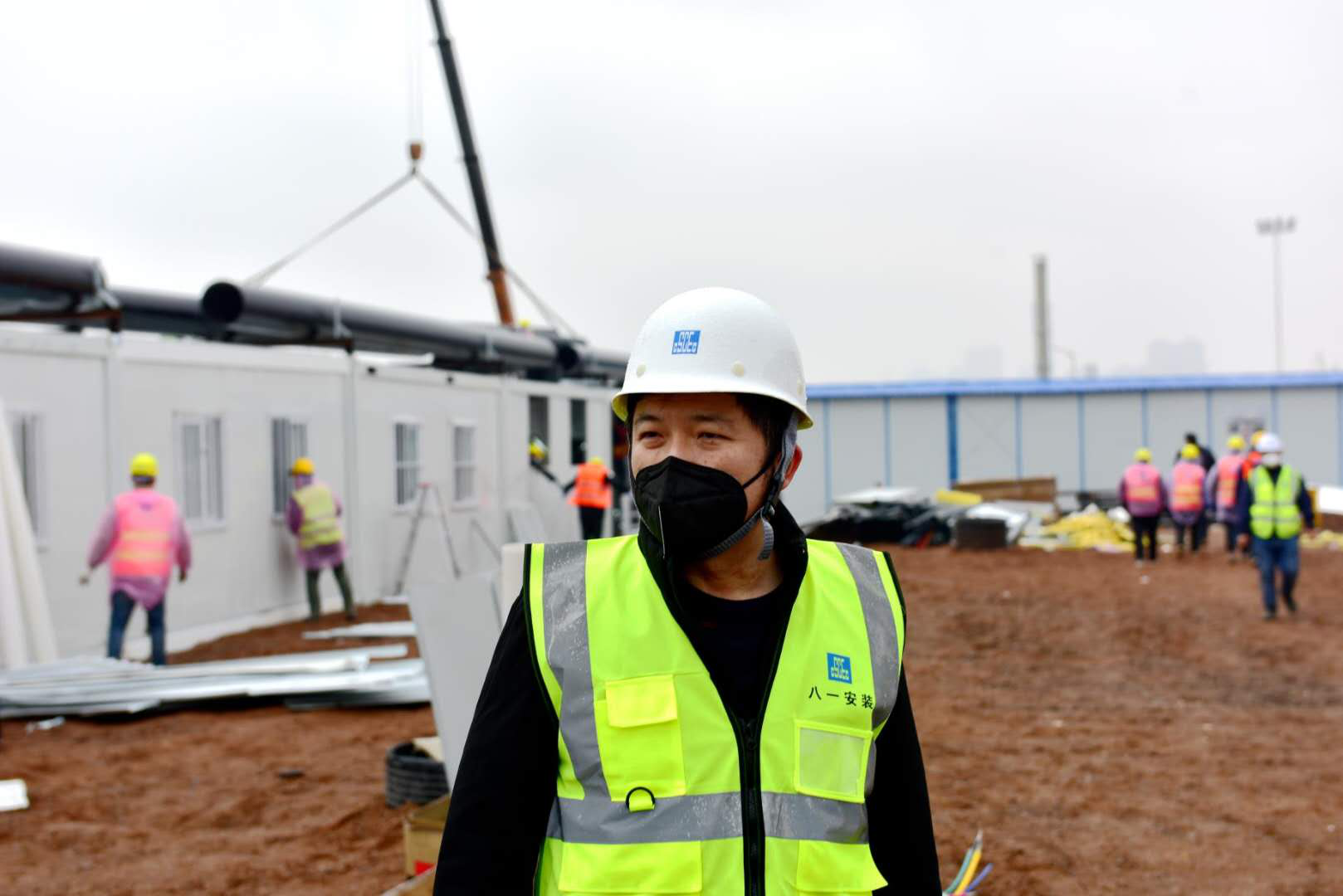 (左錦萍的丈夫方磊在武漢雷神山醫(yī)院建設現(xiàn)場)