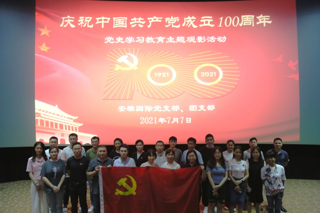 安糧國際黨支部組織全體黨員觀看愛國主義教育影片《1921》,深入了解諸多仁人志士前赴后繼傳播馬克思主義、創(chuàng)建中國共產(chǎn)黨的熱血故事,集體回憶和重溫中國共產(chǎn)黨的偉大誕生過程,激發(fā)了大家強烈的愛黨愛國之情。