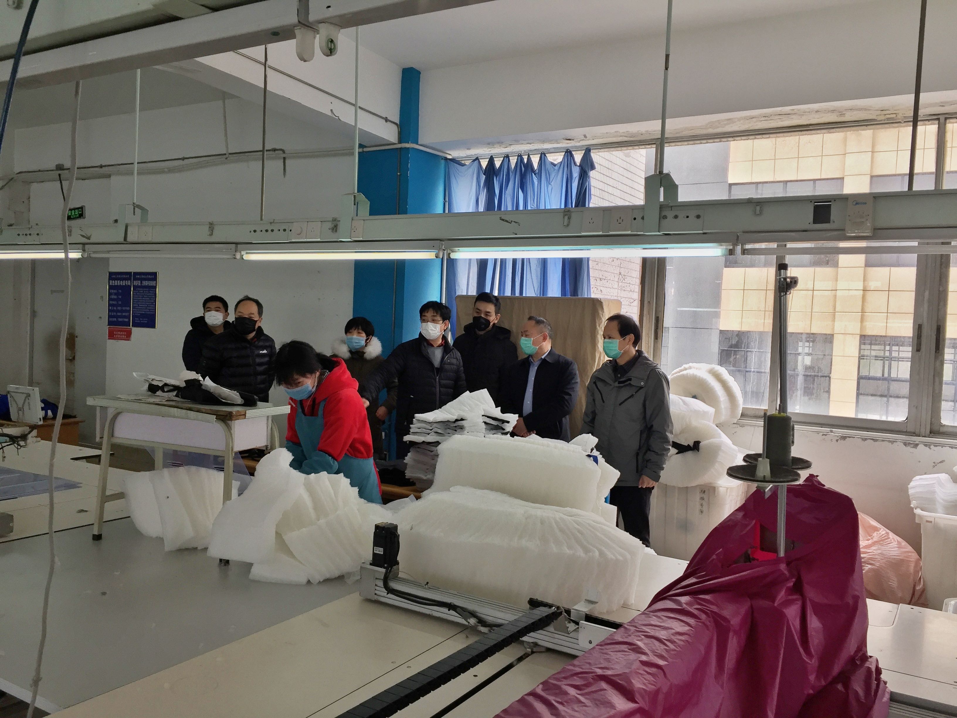 督查組一行深入工廠值班門崗、生產(chǎn)車間、防疫用品倉庫、臨時隔離室、員工宿舍及職工食堂,實地檢查重點部位、關(guān)鍵環(huán)節(jié)疫情防控措施落實情況,詳細了解外貿(mào)訂單、產(chǎn)能恢復進展,并針對督導檢查中發(fā)現(xiàn)的問題,現(xiàn)場提出明確整改要求。