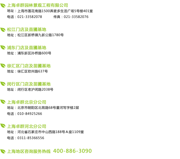 上海卓群園林景觀有限公司 版權所有 地址:上海市蓮花南路1500弄麥多生活廣場5號樓401室