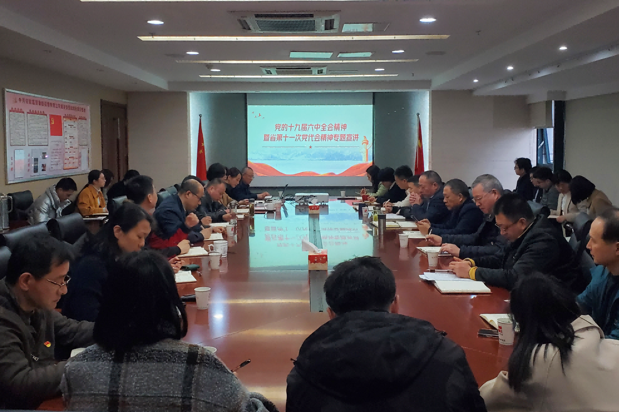 為持續(xù)深入學(xué)習(xí)貫徹黨的十九屆六中全會(huì)精神,根據(jù)海螺集團(tuán)黨委工作部署和安徽國貿(mào)黨委工作安排,3月25日下午,安徽國貿(mào)黨委書記、董事長何傳友在國貿(mào)機(jī)關(guān)黨支部作黨的十九屆六中全會(huì)精神專題宣講,國貿(mào)機(jī)關(guān)黨支部全體黨員參加學(xué)習(xí)。
