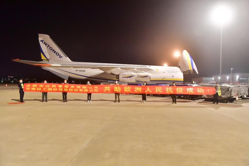 一架載有100萬只口罩的捷克軍機(jī)安124型大型運(yùn)輸機(jī)起飛駛向捷克。這批由安徽輕工國際貿(mào)易股份有限公司代理出口的防疫物資,從3月16日確認(rèn)訂單,到3月24日首批出運(yùn),創(chuàng)造了輕工速度、輕工服務(wù)、輕工效率!