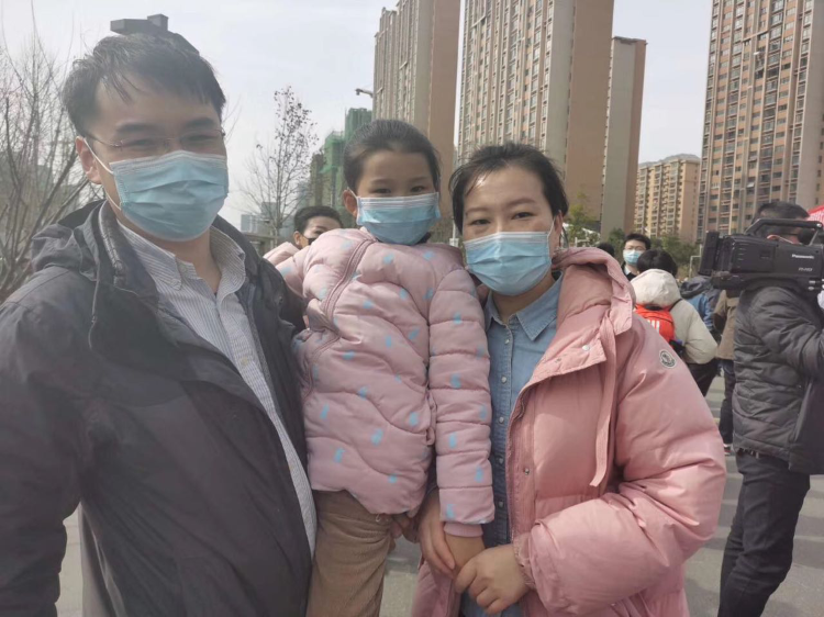 (宣揚和女兒送別馳援武漢抗疫的妻子)