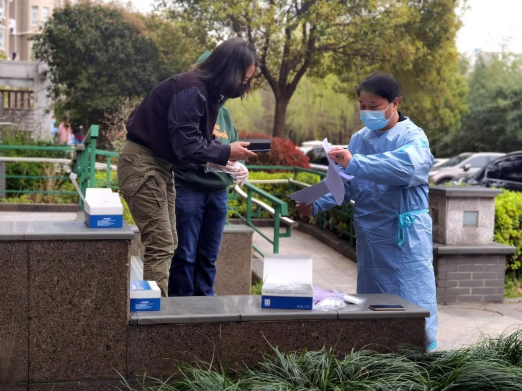 自3月26日開始,吳昊就奔波在社區(qū)疫情防控工作的第一線,他的主要工作是協(xié)助指導(dǎo)社區(qū)居民開展新冠病毒自檢工作?!澳?,這里有幾位住戶?請拿好抗原檢測試劑盒。”“檢測前,記得洗凈雙手。檢測時,棉簽伸入1.5到2厘米……”小區(qū)的樓道里,同樣的叮囑吳昊重復(fù)了無數(shù)遍。他和樓組長逐門逐戶發(fā)放試劑盒,確保“應(yīng)檢盡檢、不落一戶、不漏一人”。針對不會自測的高齡人群,吳昊則堅持入戶助檢,貼心幫助老人們完成操作流程。